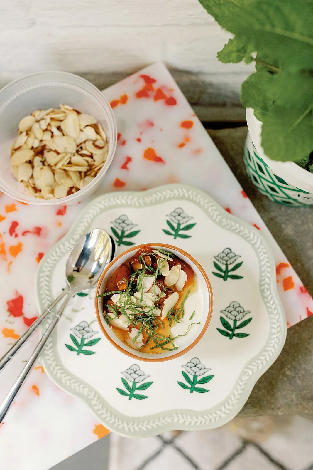 peach panna cotta with toasted almond, honey and thyme