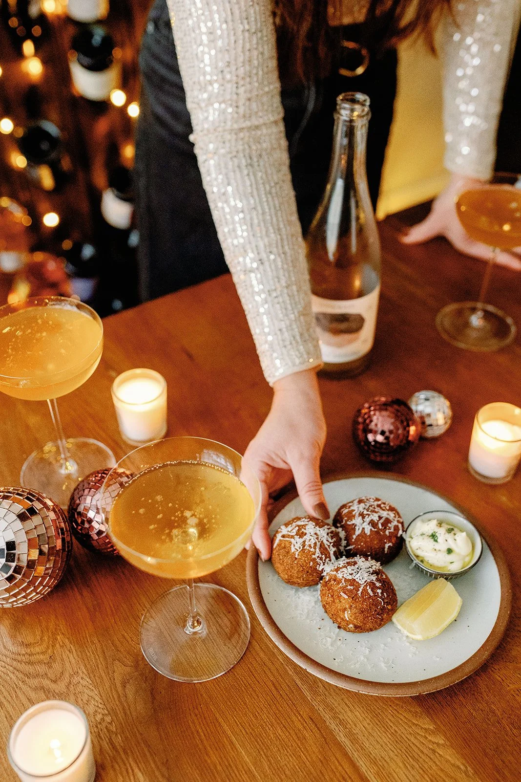 caramelized onion, chestnut + wild mushroom arancini, aioli dip